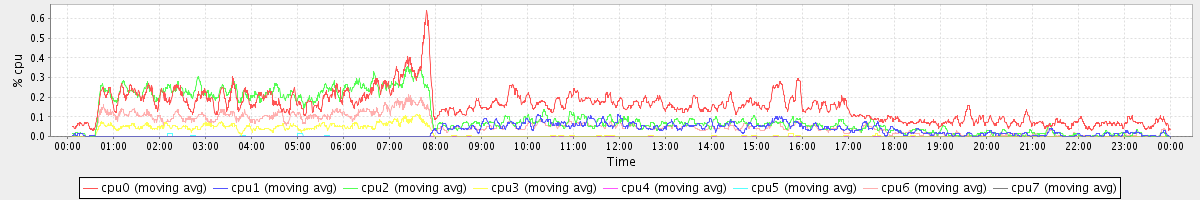 avg(cpu0) = 0.15 avg(cpu1) = 0.03 avg(cpu2) = 0.10 avg(cpu3) = 0.02 avg(cpu4) = 0.00 avg(cpu5) = 0.00 avg(cpu6) = 0.06 avg(cpu7) = 0.00