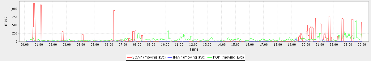 avg(IMAP) = 20.64 avg(IMAP SSL) = 899.40 avg(POP) = 0.10 avg(POP SSL) = 9.22
