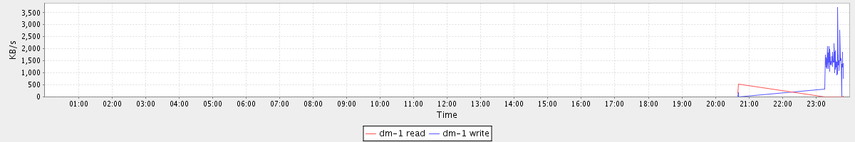 avg(dm-1 read) = 0.33 avg(dm-1 write) = 34.74
