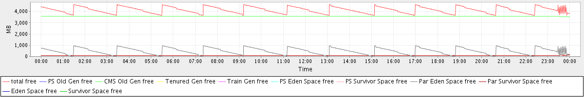 avg(total free) = 4130.03 avg(PS Old Gen free) = 0.00 avg(CMS Old Gen free) = 3565.19 avg(Tenured Gen free) = 0.00 avg(Train Gen free) = 0.00 avg(PS Eden Space free) = 0.00 avg(PS Survivor Space free) = 0.00 avg(Par Eden Space free) = 474.69 avg(Par Survivor Space free) = 90.14 avg(Eden Space free) = 0.00 avg(Survivor Space free) = 0.00