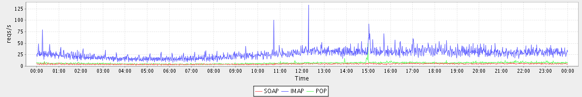 Host zm02.stanford.edu: Mailboxd: Request Rate by Client Protocol