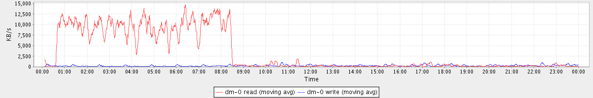 avg(dm-0 read) = 3364.75 avg(dm-0 write) = 279.93