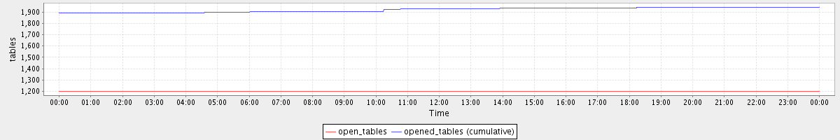 avg(open_tables) = 1199.93 avg(opened_tables (cumulative)) = 1921.34