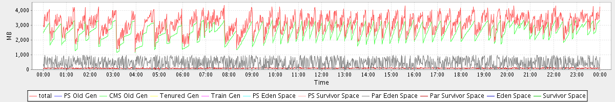 avg(total) = 3096.20 avg(PS Old Gen) = 0.00 avg(CMS Old Gen) = 2531.37 avg(Tenured Gen) = 0.00 avg(Train Gen) = 0.00 avg(PS Eden Space) = 0.00 avg(PS Survivor Space) = 0.00 avg(Par Eden Space) = 471.03 avg(Par Survivor Space) = 93.80 avg(Eden Space) = 0.00 avg(Survivor Space) = 0.00