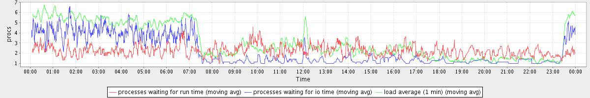 avg(processes waiting for run time) = 1.49 avg(processes waiting for io time) = 1.53 avg(load average (1 min)) = 3.12