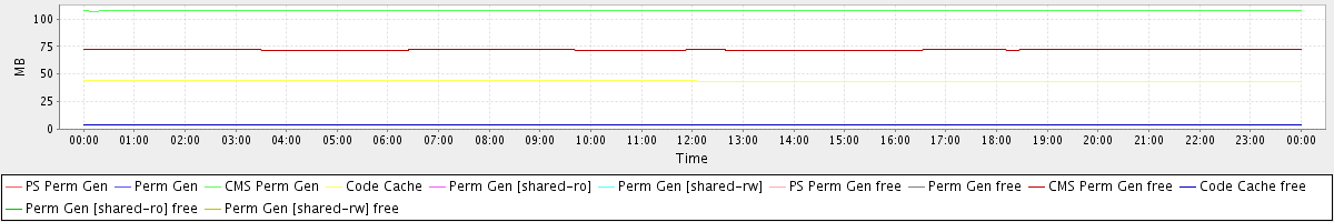 avg(PS Perm Gen) = 0.00 avg(Perm Gen) = 0.00 avg(CMS Perm Gen) = 107.50 avg(Code Cache) = 43.78 avg(Perm Gen [shared-ro]) = 0.00 avg(Perm Gen [shared-rw]) = 0.00 avg(PS Perm Gen free) = 0.00 avg(Perm Gen free) = 0.00 avg(CMS Perm Gen free) = 72.09 avg(Code Cache free) = 4.09 avg(Perm Gen [shared-ro] free) = 0.00 avg(Perm Gen [shared-rw] free) = 0.00
