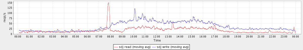 avg(sda read) = 2.24 avg(sda write) = 3.28