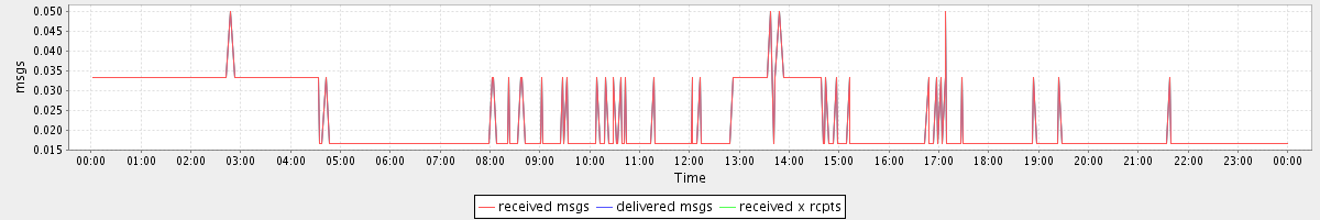 avg(received msgs) = 0.01 avg(delivered msgs) = 0.01 avg(received x rcpts) = 0.01
