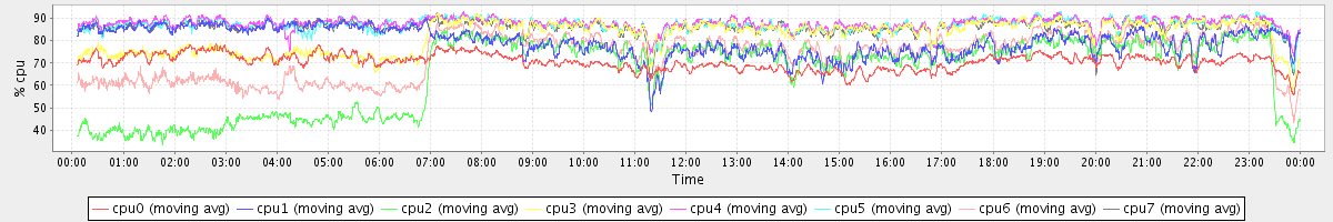 avg(cpu0) = 70.58 avg(cpu1) = 79.61 avg(cpu2) = 65.68 avg(cpu3) = 82.25 avg(cpu4) = 87.68 avg(cpu5) = 87.03 avg(cpu6) = 73.28 avg(cpu7) = 86.15