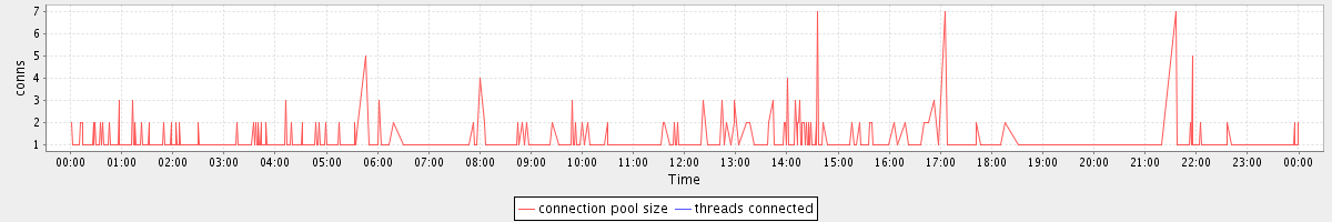 avg(connection pool size) = 0.54 avg(threads connected) = 0.00