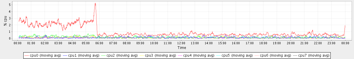 avg(cpu0) = 0.07 avg(cpu1) = 0.01 avg(cpu2) = 0.06 avg(cpu3) = 0.01 avg(cpu4) = 0.00 avg(cpu5) = 0.00 avg(cpu6) = 0.03 avg(cpu7) = 0.00