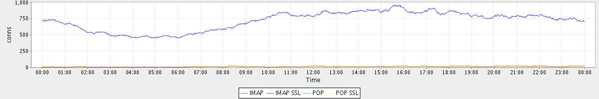 avg(IMAP) = 14.45 avg(IMAP SSL) = 718.02 avg(POP) = 0.04 avg(POP SSL) = 9.91