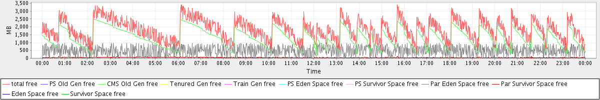 avg(total free) = 1816.89 avg(PS Old Gen free) = 0.00 avg(CMS Old Gen free) = 1296.63 avg(Tenured Gen free) = 0.00 avg(Train Gen free) = 0.00 avg(PS Eden Space free) = 0.00 avg(PS Survivor Space free) = 0.00 avg(Par Eden Space free) = 481.61 avg(Par Survivor Space free) = 38.65 avg(Eden Space free) = 0.00 avg(Survivor Space free) = 0.00