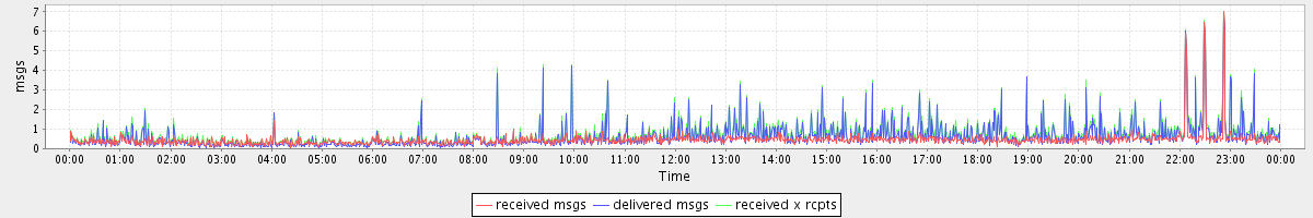 avg(received msgs) = 0.45 avg(delivered msgs) = 0.60 avg(received x rcpts) = 0.72