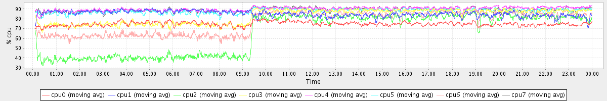 avg(cpu0) = 74.79 avg(cpu1) = 85.19 avg(cpu2) = 65.61 avg(cpu3) = 82.73 avg(cpu4) = 90.12 avg(cpu5) = 88.14 avg(cpu6) = 76.29 avg(cpu7) = 89.03