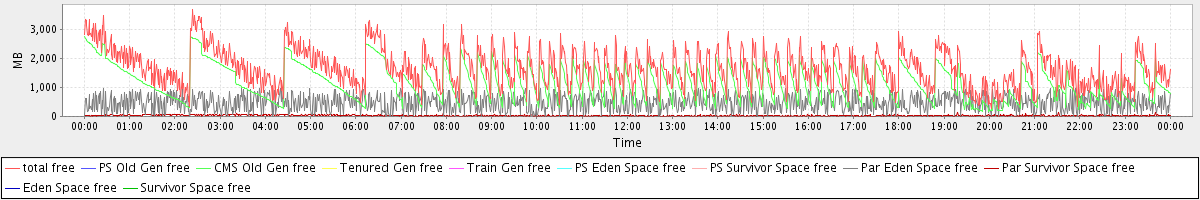avg(total free) = 1669.81 avg(PS Old Gen free) = 0.00 avg(CMS Old Gen free) = 1162.68 avg(Tenured Gen free) = 0.00 avg(Train Gen free) = 0.00 avg(PS Eden Space free) = 0.00 avg(PS Survivor Space free) = 0.00 avg(Par Eden Space free) = 476.88 avg(Par Survivor Space free) = 30.25 avg(Eden Space free) = 0.00 avg(Survivor Space free) = 0.00
