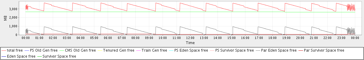 avg(total free) = 3227.42 avg(PS Old Gen free) = 0.00 avg(CMS Old Gen free) = 2657.07 avg(Tenured Gen free) = 0.00 avg(Train Gen free) = 0.00 avg(PS Eden Space free) = 0.00 avg(PS Survivor Space free) = 0.00 avg(Par Eden Space free) = 483.74 avg(Par Survivor Space free) = 86.61 avg(Eden Space free) = 0.00 avg(Survivor Space free) = 0.00