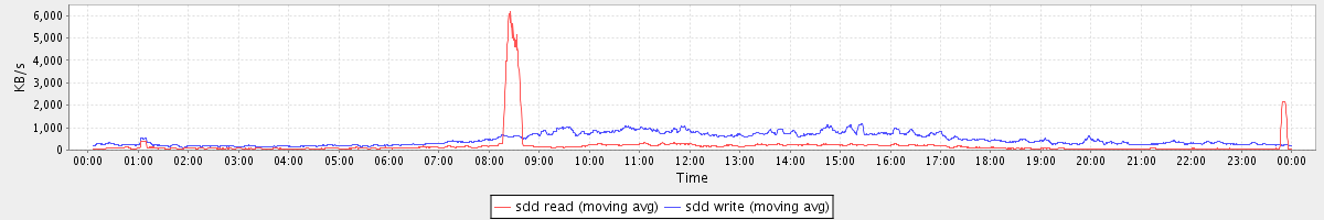 avg(sda2 read) = 0.59 avg(sda2 write) = 8.18