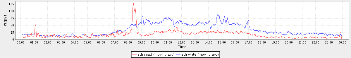 avg(sda read) = 2.22 avg(sda write) = 3.20