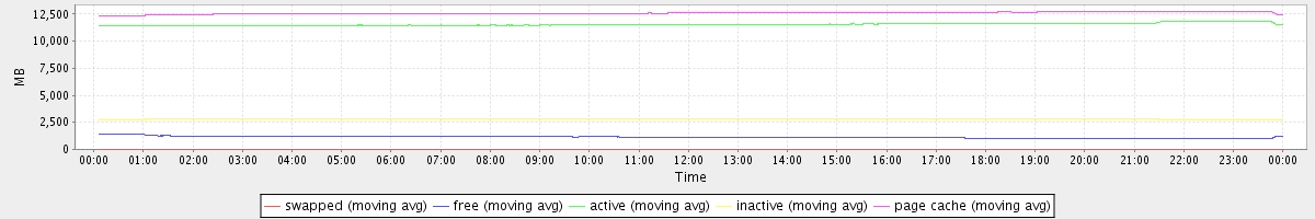 avg(swapped) = 0.20 avg(free) = 1134.89 avg(active) = 11550.79 avg(inactive) = 2844.06 avg(page cache) = 12598.01