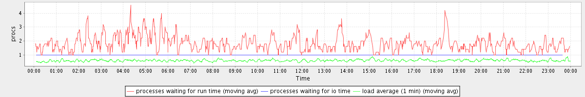 avg(processes waiting for run time) = 0.68 avg(processes waiting for io time) = 0.00 avg(load average (1 min)) = 0.59
