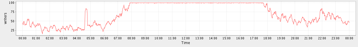 avg(user) = 17.10 avg(sys) = 1.71 avg(idle) = 72.63 avg(iowait) = 7.87 avg(nice) = 0.00 avg(irq) = 0.06 avg(softirq) = 0.65
