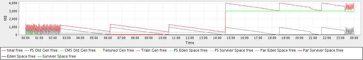 avg(total free) = 1933.75 avg(PS Old Gen free) = 0.00 avg(CMS Old Gen free) = 1378.65 avg(Tenured Gen free) = 0.00 avg(Train Gen free) = 0.00 avg(PS Eden Space free) = 0.00 avg(PS Survivor Space free) = 0.00 avg(Par Eden Space free) = 494.84 avg(Par Survivor Space free) = 60.26 avg(Eden Space free) = 0.00 avg(Survivor Space free) = 0.00