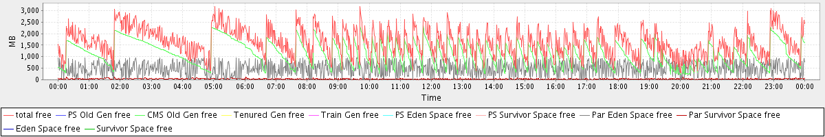 avg(total free) = 1637.53 avg(PS Old Gen free) = 0.00 avg(CMS Old Gen free) = 1115.18 avg(Tenured Gen free) = 0.00 avg(Train Gen free) = 0.00 avg(PS Eden Space free) = 0.00 avg(PS Survivor Space free) = 0.00 avg(Par Eden Space free) = 489.67 avg(Par Survivor Space free) = 32.68 avg(Eden Space free) = 0.00 avg(Survivor Space free) = 0.00