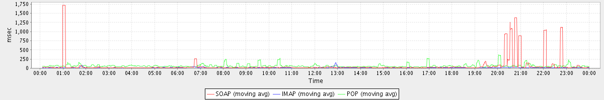 avg(IMAP) = 5.94 avg(IMAP SSL) = 798.79 avg(POP) = 0.01 avg(POP SSL) = 11.81