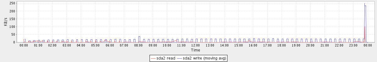avg(sda2 read) = 0.21 avg(sda2 write) = 6.63