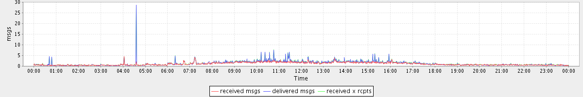 avg(received msgs) = 1.07 avg(delivered msgs) = 1.23 avg(received x rcpts) = 1.31