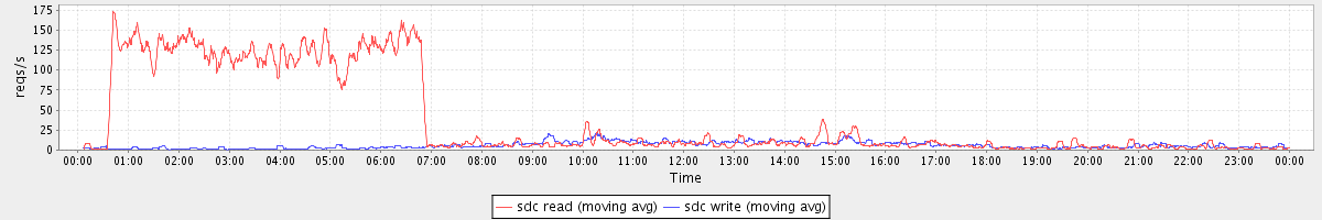 avg(user) = 14.08 avg(sys) = 1.39 avg(idle) = 77.07 avg(iowait) = 7.01 avg(nice) = 0.00 avg(irq) = 0.04 avg(softirq) = 0.42