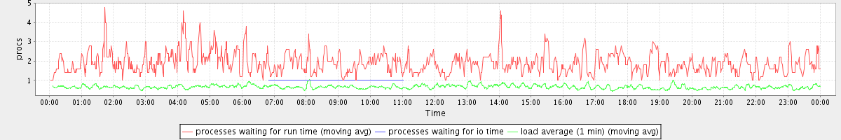 avg(processes waiting for run time) = 0.78 avg(processes waiting for io time) = 0.00 avg(load average (1 min)) = 0.66