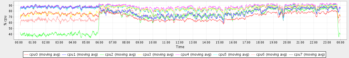 avg(cpu0) = 72.00 avg(cpu1) = 80.04 avg(cpu2) = 67.12 avg(cpu3) = 82.75 avg(cpu4) = 88.18 avg(cpu5) = 85.63 avg(cpu6) = 75.10 avg(cpu7) = 85.57
