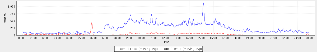 avg(dm-1 read) = 459.94 avg(dm-1 write) = 1285.94