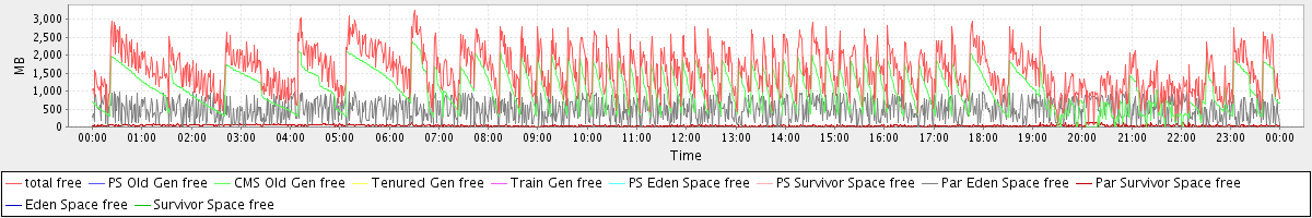 avg(total free) = 1568.81 avg(PS Old Gen free) = 0.00 avg(CMS Old Gen free) = 1044.52 avg(Tenured Gen free) = 0.00 avg(Train Gen free) = 0.00 avg(PS Eden Space free) = 0.00 avg(PS Survivor Space free) = 0.00 avg(Par Eden Space free) = 488.47 avg(Par Survivor Space free) = 35.82 avg(Eden Space free) = 0.00 avg(Survivor Space free) = 0.00