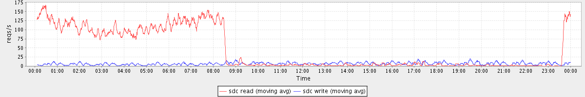 avg(sda1 read) = 22.54 avg(sda1 write) = 51.86