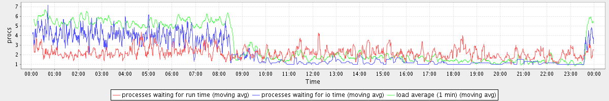 avg(processes waiting for run time) = 1.32 avg(processes waiting for io time) = 1.54 avg(load average (1 min)) = 3.02
