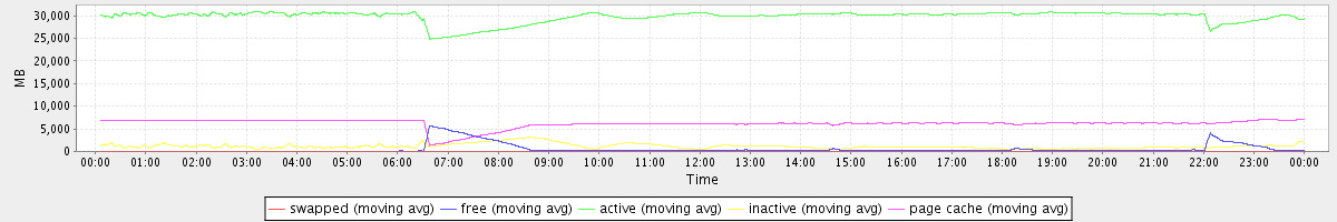 avg(swapped) = 0.23 avg(free) = 520.11 avg(active) = 29807.89 avg(inactive) = 1158.93 avg(page cache) = 6177.58