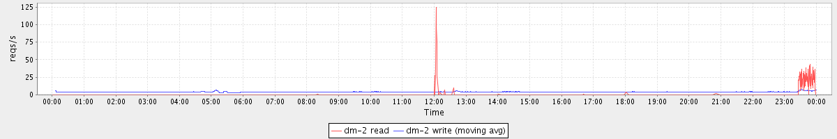 avg(dm-1 read) = 0.28 avg(dm-1 write) = 6.13