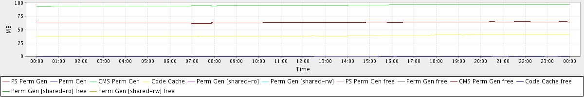 avg(PS Perm Gen) = 0.00 avg(Perm Gen) = 0.00 avg(CMS Perm Gen) = 95.33 avg(Code Cache) = 38.59 avg(Perm Gen [shared-ro]) = 0.00 avg(Perm Gen [shared-rw]) = 0.00 avg(PS Perm Gen free) = 0.00 avg(Perm Gen free) = 0.00 avg(CMS Perm Gen free) = 63.32 avg(Code Cache free) = 0.35 avg(Perm Gen [shared-ro] free) = 0.00 avg(Perm Gen [shared-rw] free) = 0.00