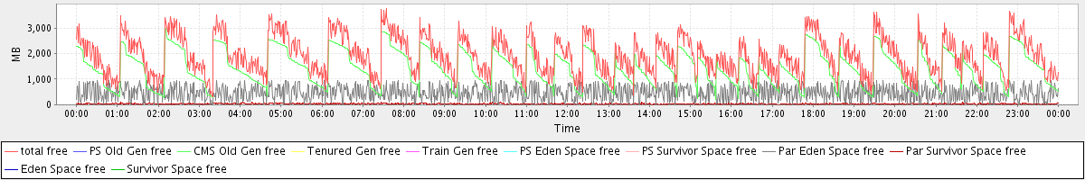 avg(total free) = 1933.32 avg(PS Old Gen free) = 0.00 avg(CMS Old Gen free) = 1428.14 avg(Tenured Gen free) = 0.00 avg(Train Gen free) = 0.00 avg(PS Eden Space free) = 0.00 avg(PS Survivor Space free) = 0.00 avg(Par Eden Space free) = 469.72 avg(Par Survivor Space free) = 35.47 avg(Eden Space free) = 0.00 avg(Survivor Space free) = 0.00
