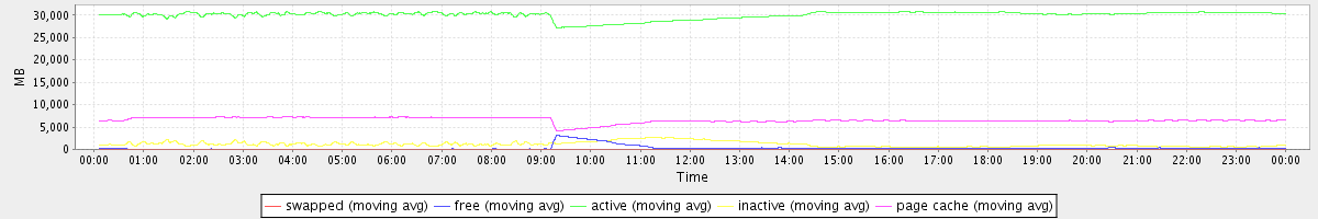 avg(swapped) = 0.23 avg(free) = 309.43 avg(active) = 30055.92 avg(inactive) = 1148.28 avg(page cache) = 6567.86