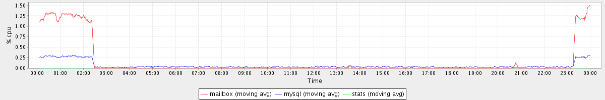 avg(mailbox) = 0.16 avg(mysql) = 0.06 avg(stats) = 0.00