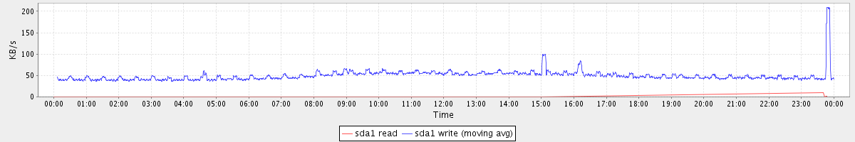 avg(sda1 read) = 0.00 avg(sda1 write) = 49.53