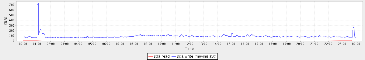 avg(sda1 read) = 0.00 avg(sda1 write) = 2.33