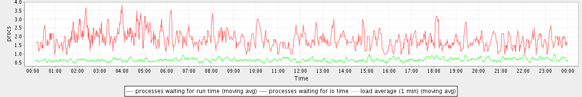 avg(processes waiting for run time) = 0.82 avg(processes waiting for io time) = 0.00 avg(load average (1 min)) = 0.67