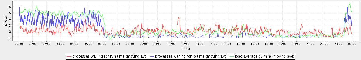 avg(processes waiting for run time) = 1.36 avg(processes waiting for io time) = 1.27 avg(load average (1 min)) = 2.63