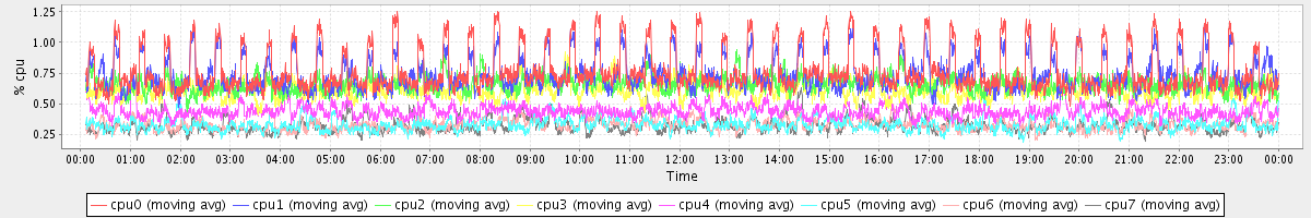 avg(cpu0) = 0.77 avg(cpu1) = 0.74 avg(cpu2) = 0.66 avg(cpu3) = 0.61 avg(cpu4) = 0.44 avg(cpu5) = 0.33 avg(cpu6) = 0.33 avg(cpu7) = 0.32