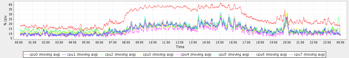 avg(cpu0) = 2.27 avg(cpu1) = 0.55 avg(cpu2) = 0.59 avg(cpu3) = 0.54 avg(cpu4) = 0.43 avg(cpu5) = 0.52 avg(cpu6) = 0.54 avg(cpu7) = 0.52
